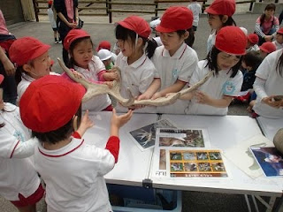 秘密を教えてもらい・・・ 実際に触らせてもらいました。見た目より重く、ざらざらした手触りにびっくりしている子も沢山いました。