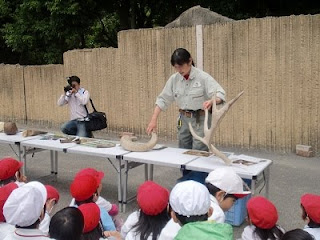 年長組は動物園のプログラム「角や牙から動物について学ぼう」を体験してきました。象の牙は実は前歯だった!!サイの角は昔髪の毛だった!!など