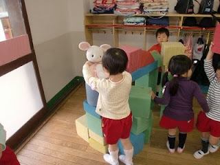 雨が降ると、園庭で遊べなく、遊ぶ場所も少なくなってしまいますが、そんな中でも子ども達が楽しく過ごせるよう、色々と考えています。