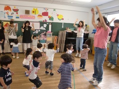 そして、そのあとは、保護者の方にもお子さんと一緒にクラスに入っていただき、登園の職員と一緒に体操をしました。