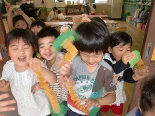 2011年6月13日2018年3月28日びよんびよん(飛び出すかえる)を作りました ひよこ1くみは、今日、飛び出すかえるを作りました。プリンカップからびよよ~んとカエルが飛び出します。 「見せて」というと、みんなが集まって一斉に見せてくれました。 出来上がったのが、とても嬉しい様子。 色々な先生やお友達を驚かす姿が沢山見られました。 (担任も驚かされています) 幼稚園の中を持ち歩く姿、可愛かったです。 投稿ナビゲーション 前へ次へ