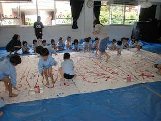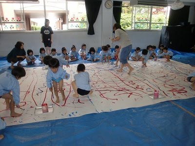 身体に絵の具が沢山つきましたが、とても嬉しそうでした。
