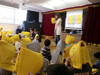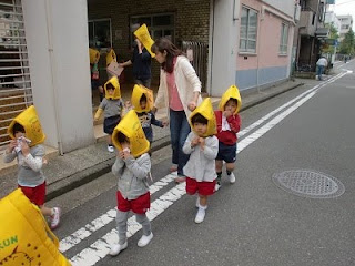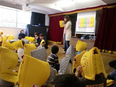 幼稚園に戻ってきてからは、避難のときの約束を再確認。 あ:あわてない