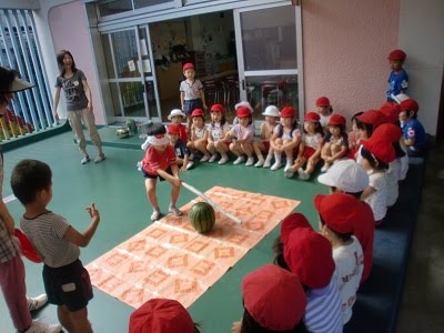 実際には、新聞で作った棒だったので、すいかを割るというところまではいかず、当たった子が何人かいました。