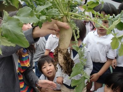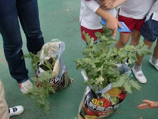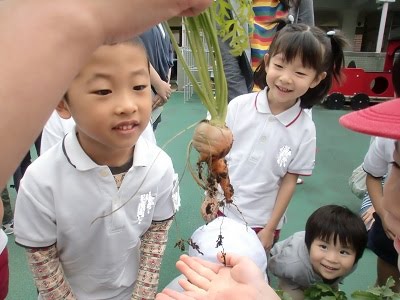 年長組が1学期に種を蒔いて育ててきた「だいこん」「にんじん」