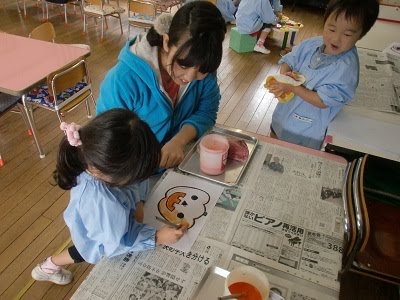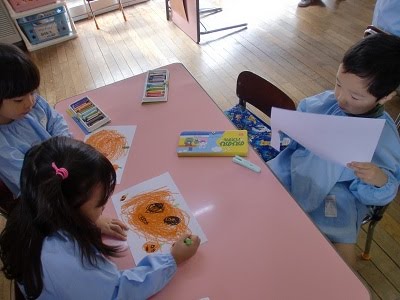 ひよこぐみは、クレヨンと絵の具を使っていました。