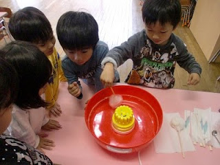 2011年10月20日2018年3月28日今日のにじっこクラブでは・・・ にじっこクラブの部屋に行くと、なにやら甘い匂いがします。なんと今日は、わたあめ作りに挑戦していました。 どんどん出てくるわたあめをわりばしですくうのが、最初少し難しかったようです。でも、自分でつくったわたあめを嬉しそうに食べていました。 おかわりをした子もいたようですが、「何回したの?」と聞いたところ、「沢山したから分からない」という子もいました。甘くて美味しかったようです。 そのあとは、とても大きな風船で遊んでいました。とっても楽しそうでしたよ。 投稿ナビゲーション 前へ次へ