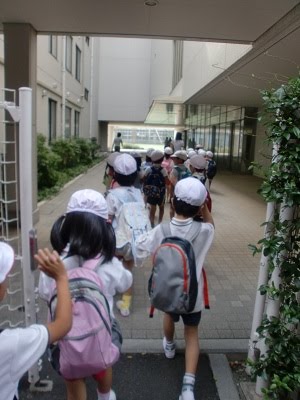 今日は、本当は、秋の遠足で岸根公園へ行く予定でした。しかし、落ち葉や木の実の扱いについて、注意するように話があったこともあり、今回の遠足は見合わせることになりました。その代わりに、今日は、高木学園へリュックサックを背負って出かけることにしました。