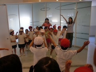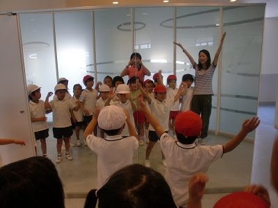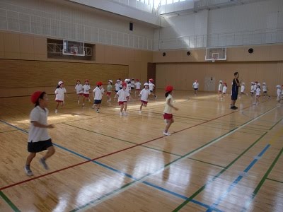 年長組は、高校生の授業が入っていなかったので、体育館で体操教室。