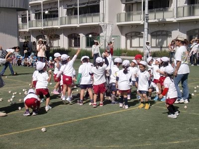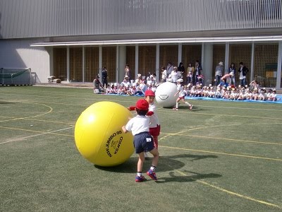 プログラムの全ては行えませんでしたが、まずは年長組の大玉転がし。