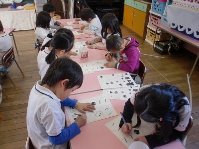 2011年12月12日2018年3月28日文字あそび 年長の部屋では、真剣に机に向かう姿が。文字に大分興味を持ち始めている年長組は、小学校に向けて少しずつ机に向かうということを経験していきます。小学校に行くと45分間の授業があります。興味を持って取り組んでいけるよう、このような機会を作っていきます。鉛筆の持ち方、椅子の座り方、先生からの指示を聞いてから取り組む・・・この文字あそびを通して、様々なことを経験し、体得してほしいと思っています。 投稿ナビゲーション 前へ次へ
