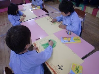 2011年12月6日2018年3月28日大きな紙に・・・ 年長組は、大きな紙に絵を描いています。自由に描いていましたよ。実は、この絵は、「あるもの」になります。「あるもの」は卒園する時にみんなの元に渡されます。お楽しみに!! 投稿ナビゲーション 前へ次へ
