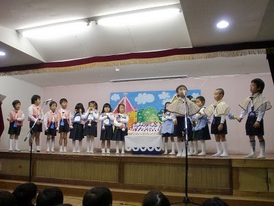 ゆきぐみ。舞台の上で前後で違う動きをしています。さすが年長組。