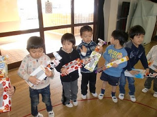 2012年1月30日2018年3月28日自分のギターで ひよこぐみは、今日自分のギターを作りました。自分で必要な箱を選んでセロテープでくっつけて・・・ 出来たギターで演奏会。 遊戯室で佐々木先生の前で披露しました。 ♪パンのマーチ ♪がちゃがちゃバンド ♪ちびっこカウボーイ に合わせての演奏。 とても可愛らしかったです。 投稿ナビゲーション 前へ次へ