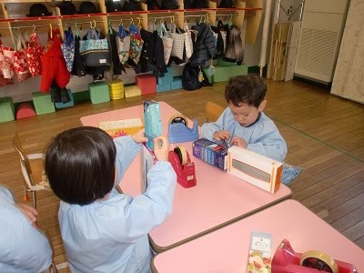 園での日々のようす 2012年1月30日2018年3月28日自分のギターで ひよこぐみは、今日自分のギターを作りました。自分で必要な箱を選んでセロテープでくっつけて・・・ 出来たギターで演奏会。 遊戯室で佐々木先生の前で披露しました。 ♪パンのマーチ ♪がちゃがちゃバンド ♪ちびっこカウボーイ に合わせての演奏。 とても可愛らしかったです。 投稿ナビゲーション 前へ次へ 一覧へ戻る HOME 園での日々のようす 自分のギターで