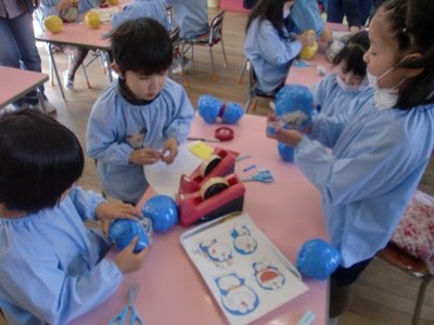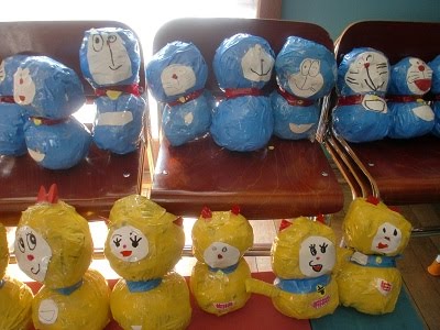 さて、ゆきぐみは造形展に向けて「ドラえもん」作り。