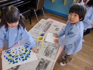 2012年1月26日2018年3月28日デカルコマニー2回目 年中組に行くと、「デカルコマニー」をしていました。2回目です。ストローの先に絵の具をつけて、白い紙にたらしていきます。 それを2つ折にして手のひらですりすり・・・ きれいな模様の出来上がり。 2回目でしたが、この「デカルコマニー」は同じ模様は出来ない・失敗がないということも楽しめる要因です。 紙を広げて「顔に見える」「かにみたい」など出来上がりから連想したりと、嬉しそうにしていましたよ。 投稿ナビゲーション 前へ次へ