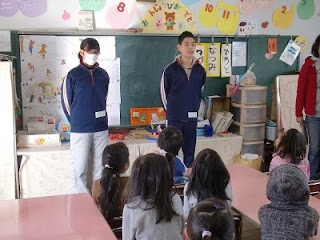 各クラスに2名ずつ入り、自己紹介をしてもらいました。