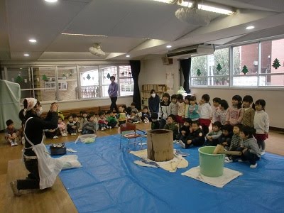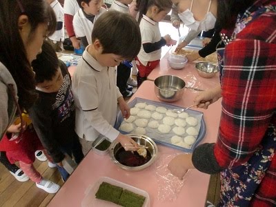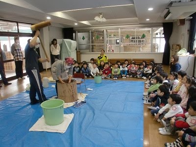 今日は、おもちつき大会でした。お餅つきといいますと、大体年末ですが、高木幼稚園では12月に生活発表会やクリスマス会があり、時間的に厳しいので、毎年1月に行っています。