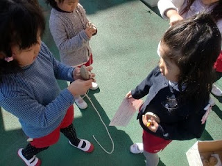 年長組は幼稚園のクリスマス会で、こまをもらったので練習をして回せるようになった子も何人かいました。