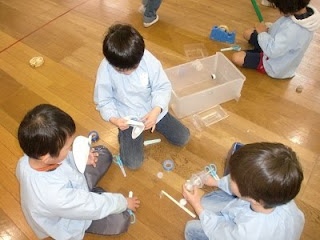 園での日々のようす 2012年2月22日2018年3月28日作って演奏 年長組は、今日遊戯室で空き箱などを組み合わせて制作をしていました。 楽器を作っているそうです。 どんな材料を、どんな風に使おうかな~。 そして、色々な楽器が出来上がりました。 音楽に合わせて色々な音をならして、とても楽しそうでしたよ。 投稿ナビゲーション 前へ次へ 一覧へ戻る HOME 園での日々のようす 作って演奏