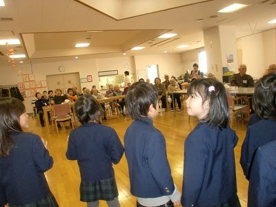 おじいちゃん・おばあちゃんの前で緊張気味の子ども達。