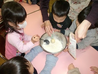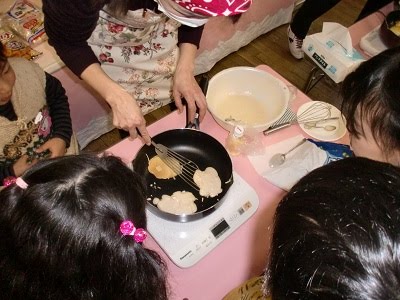 今日のにじっこでは、自分達で食べるホットケーキを作りました。
