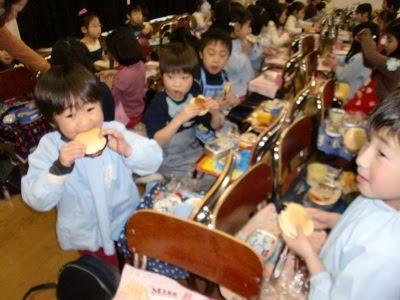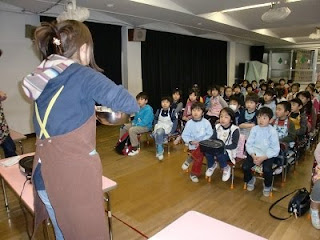 全員分その場で作るのは大変なので、数個子どもの前で作り、残りは先生が予め用意しておいたものでした。