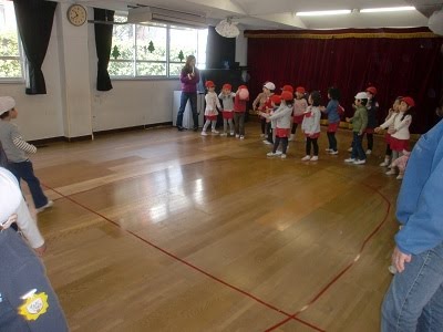 年中組は、たんぽぽ・さくら組一緒にばくだんドッジーボールをしていました。