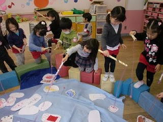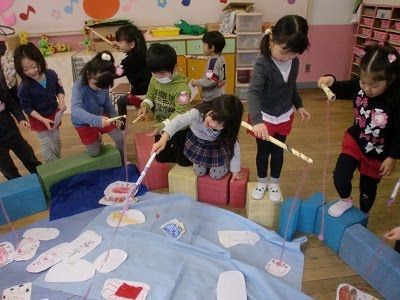 園での日々のようす 2012年3月9日2018年3月28日さかなつり~年中組~ 年中組は、先日画用紙に魚を描いていました。今日は、それを使って遊ぶようです。自分のつりざおを作って・・・釣り大会の始まりです。 色々なさかな(クリップがついています)が、釣竿にくっつき(チラシを丸めたものです)、たくさん釣っている子もいました。 また釣りで楽しもうね。 投稿ナビゲーション 前へ次へ 一覧へ戻る HOME 園での日々のようす さかなつり~年中組~