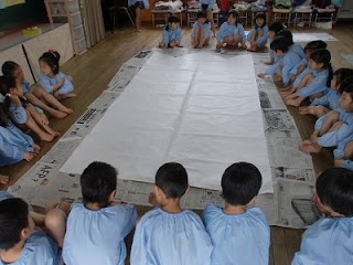 園での日々のようす 2012年4月20日2018年3月28日色を塗ろう~年長組~ 年長組の部屋に大きな紙。その紙を触ったりそっと歩いてみたり・・・ そして、みんなで色をつけます。 ゆきぐみは、黄色とオレンジ、ほしぐみは、水色と青でつけていました。 あっという間に、こんな感じに。 さて、これが何になるのかな? 出来上がりを、お楽しみに!! 投稿ナビゲーション 前へ次へ 一覧へ戻る HOME 園での日々のようす 色を塗ろう~年長組~