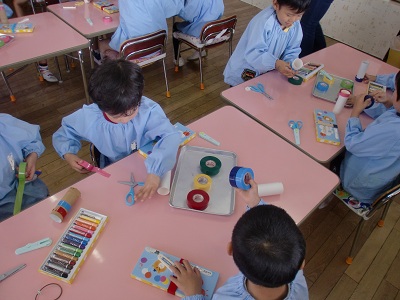 よく見ると、トイレットペーパーの芯にビニールテープを貼り付けています。