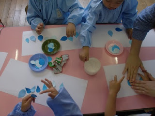 年少組では、あめつぶをたくさん画用紙に貼っていました。
