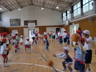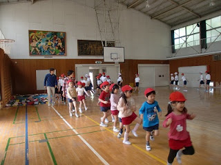 学校の体育館では、幼稚園のために特別なプログラムを用意して待っていてくれました。