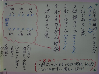 小学校の広い体育館で一緒に遊ばせてもらって、大変楽しいひとときを過ごしました。5年3組のお兄さんお姉さん、そして先生ありがとうございました。