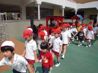 ひよこぐみだけだと、魅力的な遊具があるので、ちょっと心配だったので、今日は年長組さんと一緒に参加しました。