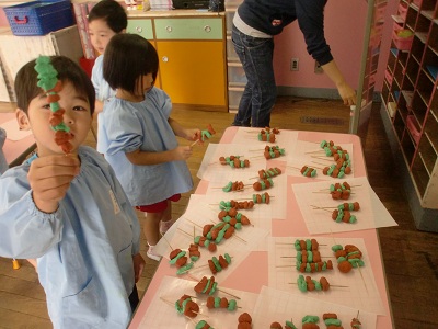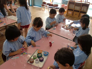 来週の火曜日は、夏祭り。今日年中組と年長組で力を合わせて作った品物もお店に並びます。お楽しみに!!