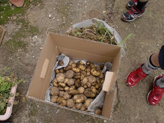 昨年度裏庭に植えた種芋が成長し、今日収穫してみることに。