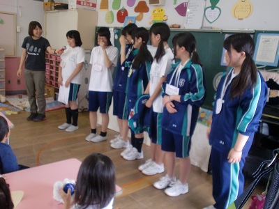 家庭科の授業の一環で、幼稚園の見学です。