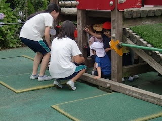 今日は、高木学園のお姉さん達が、幼稚園に来ました。