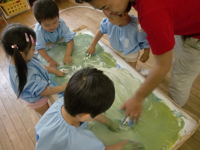 ちょっぴり冷たくて、ぬるぬる。最初は恐る恐るさわっていた子も、少しずつ慣れ・・・