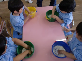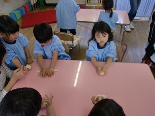 ひよこ2くみは、小麦粉ねんど。