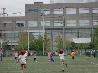 ラジオ体操などで身体を動かし、グラウンドへ。