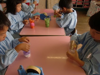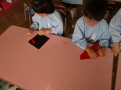 ゆきぐみは今日も夏祭りにつかう品物作り。