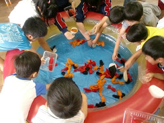 今日はビニールプールに水を入れていませんが、当日は水を入れて泳がせる予定です。