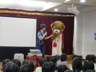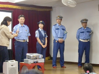 今日は、港北警察や交通安全隊、交通安全協会の方たちが来てくださり、「交通安全教室」を行ってくださいました。