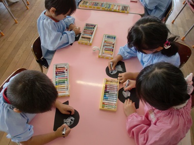 男の子はかっこよく、女の子はオシャレに・・・海賊マークのがい骨も自分達なりに工夫してかいていました。
