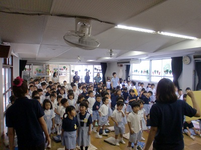 全員集まり、前から子ども達を見てみると、日焼けした子、ちょっぴり大きくなった子、髪を短く切った子・・・