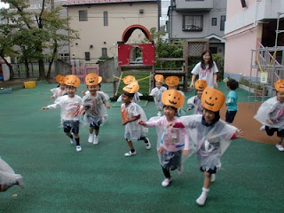 相談をして幼稚園中を走り回り、にぎやかに脅かしっこを楽しみました。