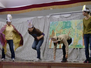 有名なお話ですが、初めて聞いたという顔をしているお子さんもいました。うさぎとかめがかけっこ競争。